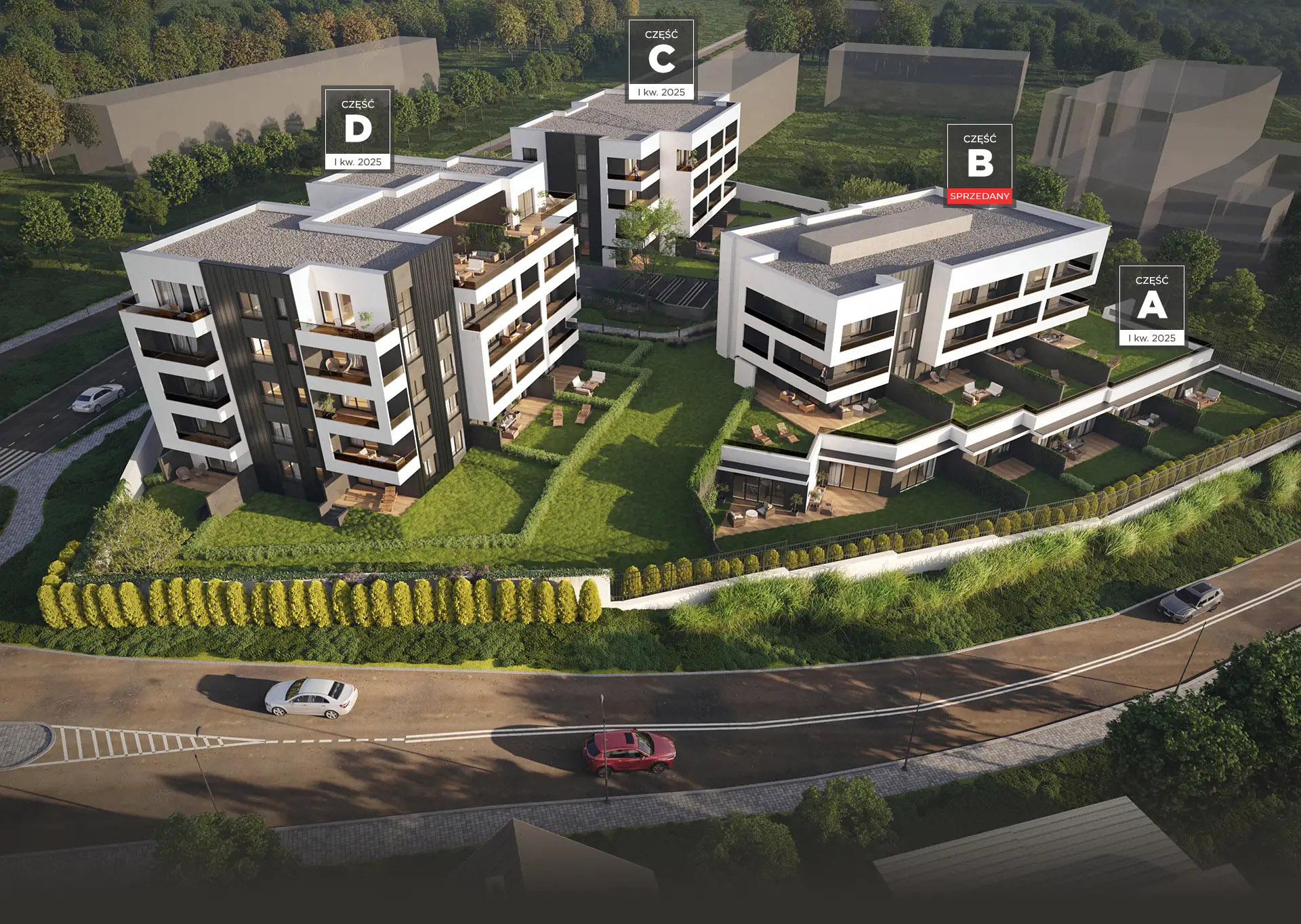 Z myślą o komforcie mieszkańców zadbano o ograniczenie do minimum ruchu pojazdów na osiedlu, które zaraz po wjeździe skierują się do garaży podziemnych.